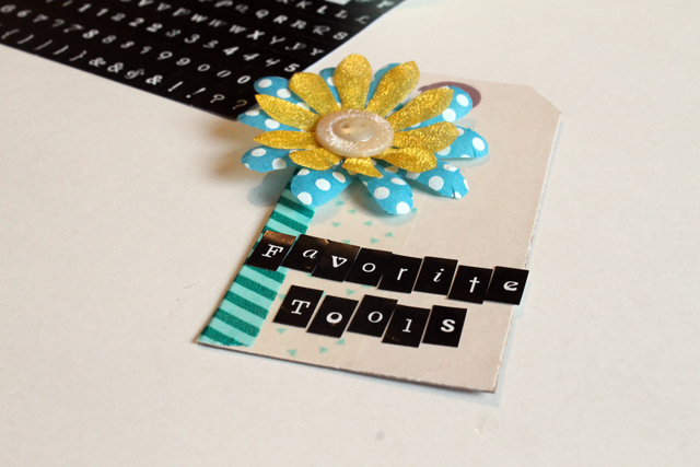 8. To embellish your tool cozy, Embellish a shipping tag with flowers, washi tape, and letter stickers.