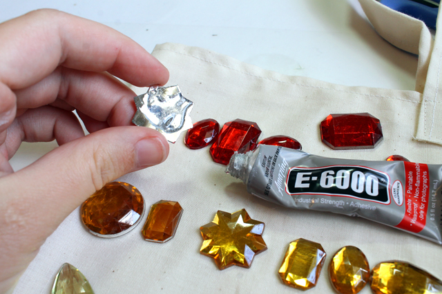 Supplies: Canvas Tote Bag, Flat Backed Rhinestones, E6000 Glue.