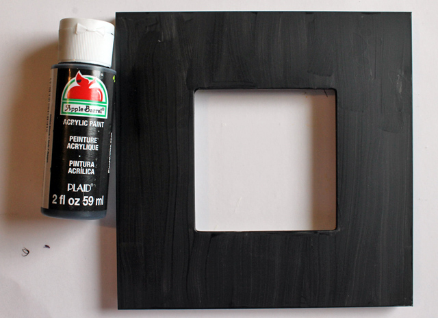 2. Using your acrylic paint and brush, Paint your frame your desired color. I chose to use black so that my jewels would "pop!"