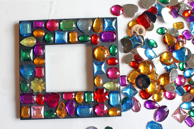 - Spray the front of the frame with a strong spray adhesive and place gems on top.