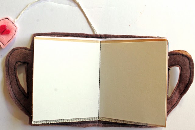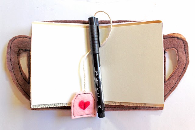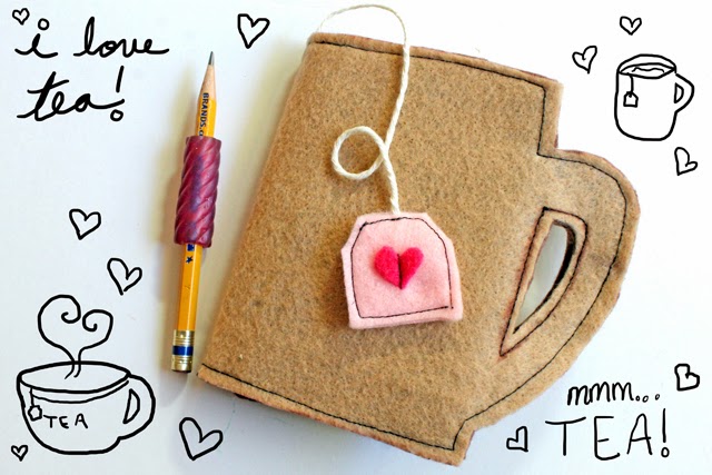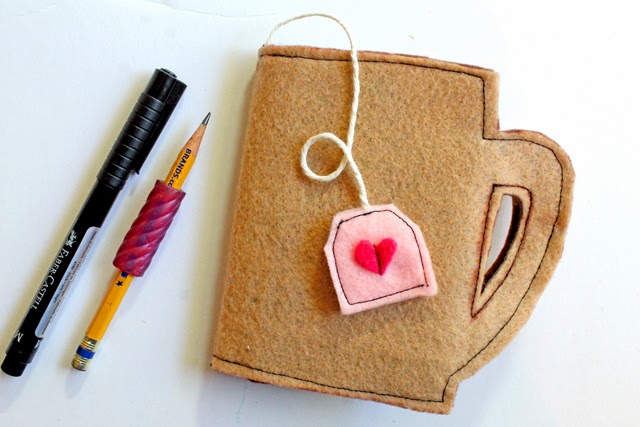 I'm sure you know I have an obsession with tea, (see my Tea Typography Notebook, Tea Cup Pouch, and Tea Mini Quilt.) but you could also make this a coffee cup. Skip the tea bag tag bookmark and embellish the front of the cup to say "java" or something like that. ;)