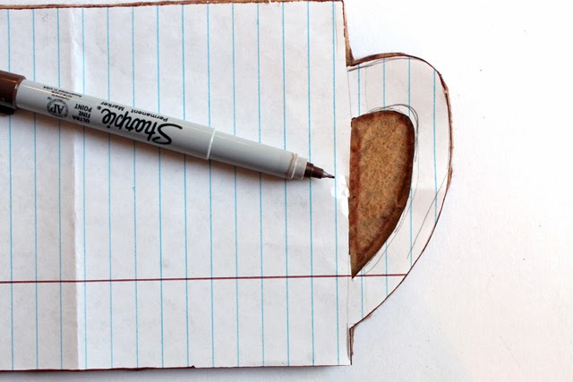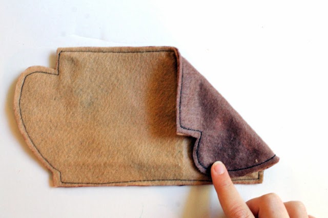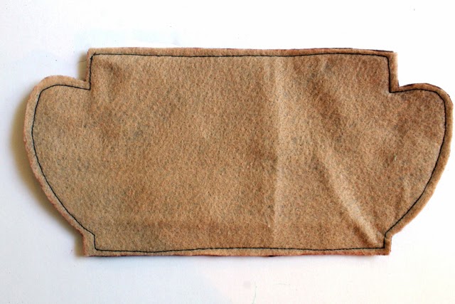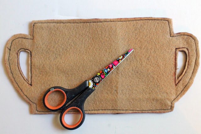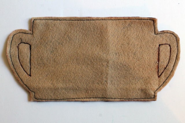 3. Using the pattern as a guide, trace the hole for the handle onto your felt cup. Do this for both sides. Stitch along the line you traced. Cut out the holes for the handles on the inside of your stitched line.