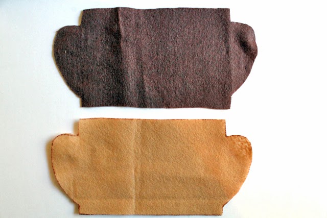 1. Download my patter here and cut out 2 of the cups, you don't need to worry about cutting out the handle hole yet. I used 2 different colors of felt but you can just use one if you want.