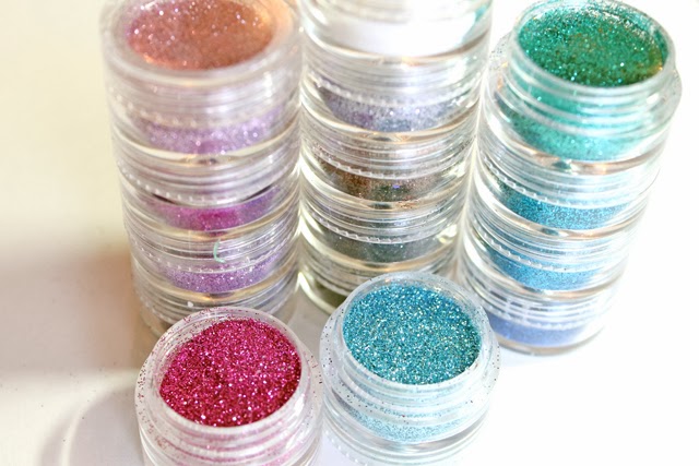 Fine glitter comes in the most colors and can usually be purchased in scrapbooking and paper crafting stores and departments. This glitter is nice because you often only need one or two coats. It does stick well to double-sided tape or a glue stick.