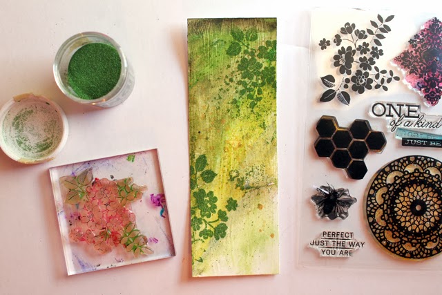 There is a lot of mixed media involved on these, gelatos, heat embossing, spray mists, etc. I made a simple how-to if you want to see how I made them: