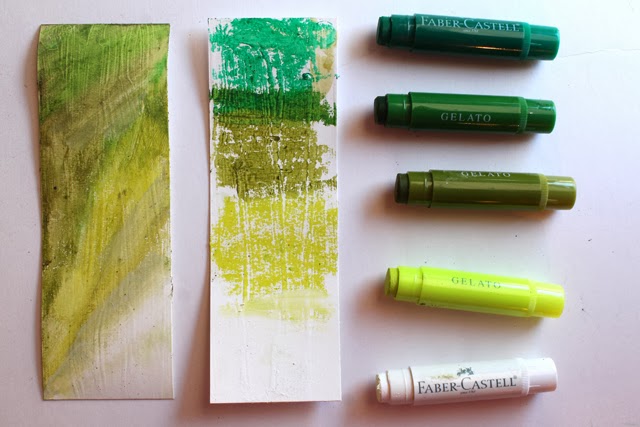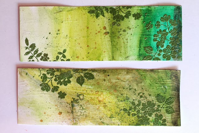 2. Using gelatos, color your bookmarks. I used varying shades of green, I love the "Green Tea" shade. :)