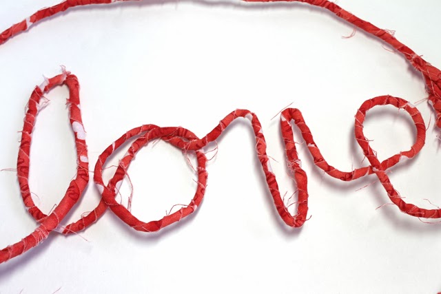My second project is this LOVE Speech Bubble. It's a couple of wire hangers wrapped in valentine fabric and than bent into a word and shape. Find the tutorial here.