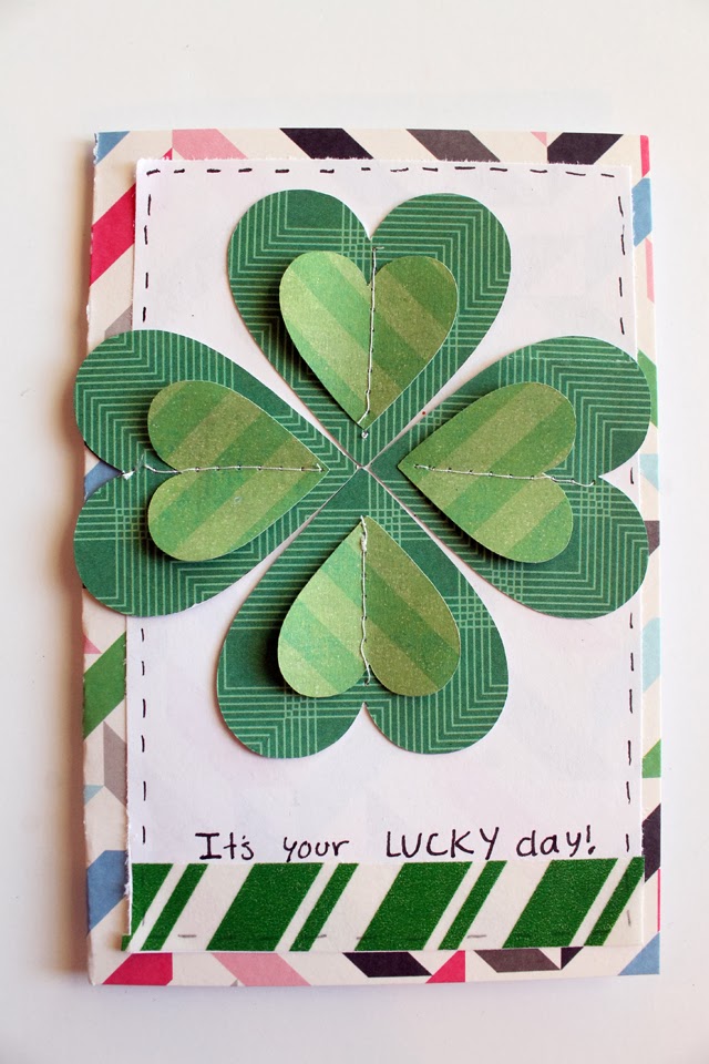 I made this cute Saint Patrick's Day card to send in the mail. Even with the 3d heart shamrock leaves it was super easy to make and I'm sharing a little tutorial with you guys! All you need is a bit of paper, glue and a sewing machine.
