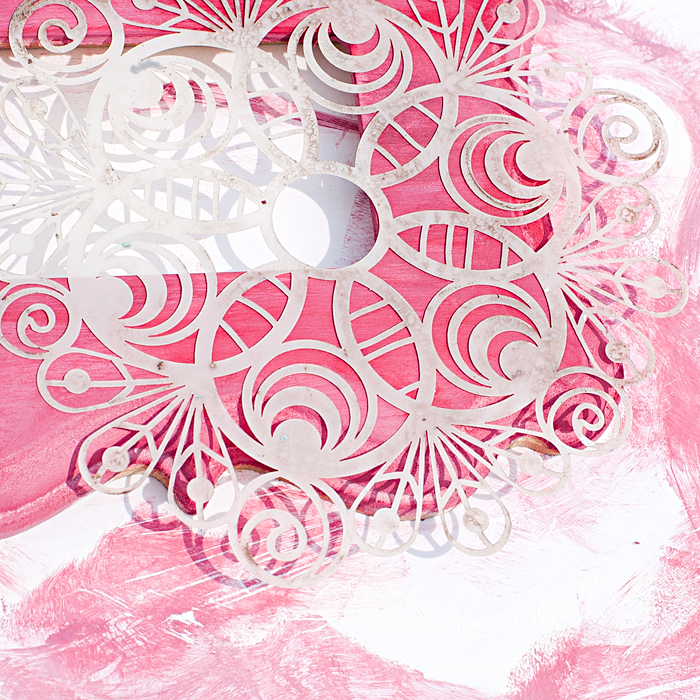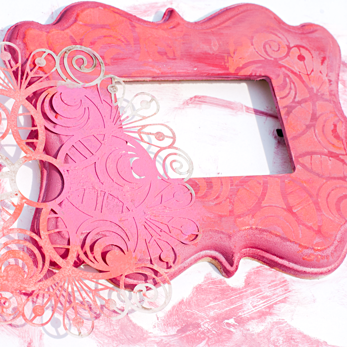 Then I took some more white paint mixed with a tiny bit of pink paint to add some more stenciling over the top to lighten up the frame since the red marker really made it much darker than the pink in the photo.