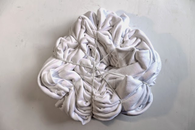2. Twist until all fabric is in a spiral shape and use 4 rubber bands to secure the spiral, overlapping them so that you have little "pie wedges" to fill in with color.