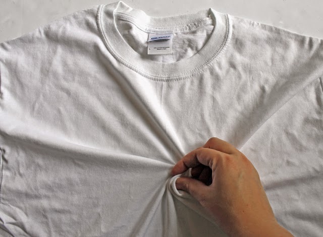 1. Pinch the middle of your shirt. This is where the center of your swirl is going to be, so it can be in the middle of you could put it off to the side. Whatever you like best! i went for the middle.