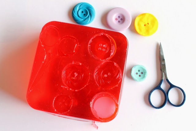 It did take quite a while to cool off and harden (I'm not very patient), so don't get in a hurry. Once it became solid again My buttons and scissors came out nicely!
