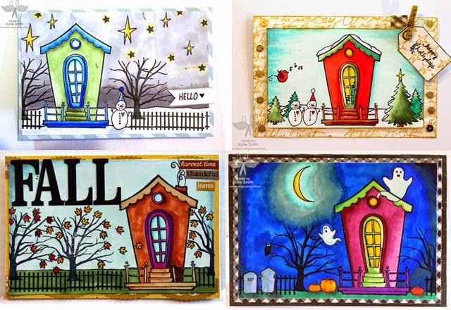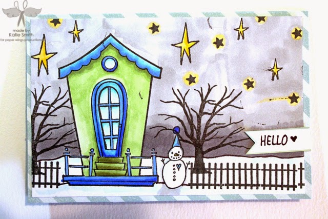 It's sort of become a personal goal/challenge to see how many different scenes I can create with this adorable house stamp. So far I've done Halloween, Fall, Christmas and this winter scene. I seriously love this house stamp.