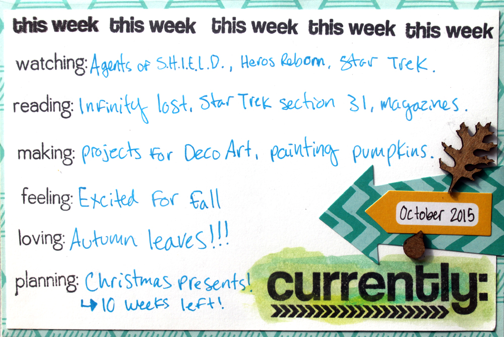 I also used the Currently list stamp set, which is where I got those "watching", "reading", Making", etc stamps. If you have a hard time deciding what to journal these stamps make good prompts.