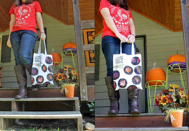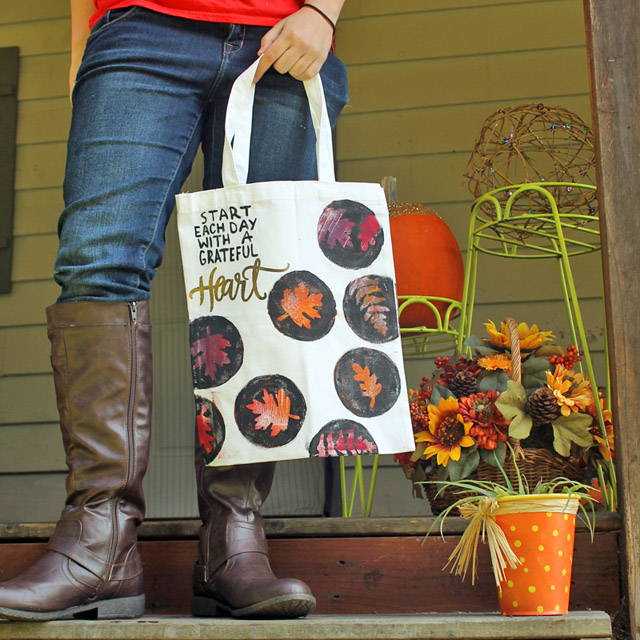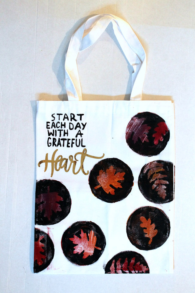 I used the Hazel and Ruby Gold Foil Iron On Tote Bag and a 4" Round Gelli Plate by Gelli Arts to design this fun tote bag that is perfect for Fall, especially with Thanksgiving just around the corner!