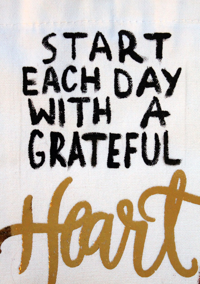 I cut the word Heart out of the iron on and used it in my quote: "Start each day with a grateful heart".