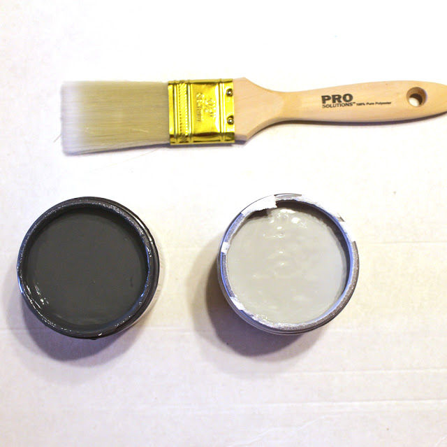1. Create a custom color (a medium grey) by mixing both containers of Yesteryear and Relic together into a container. Stir well until completely mixed.