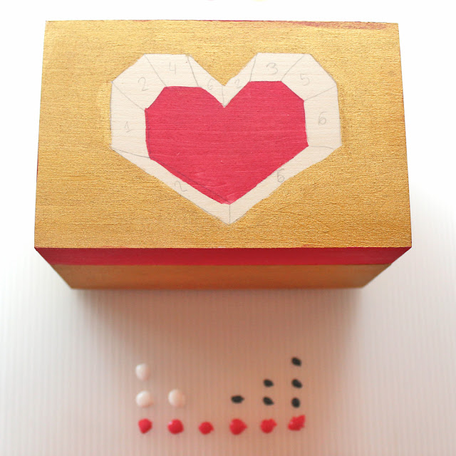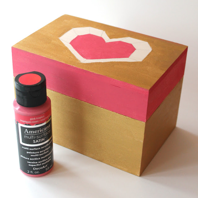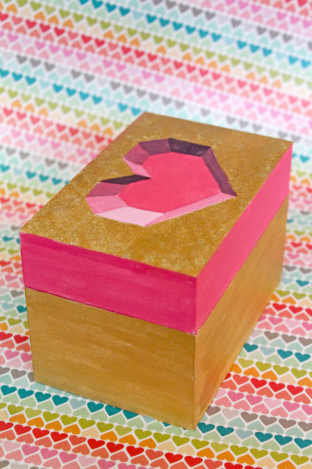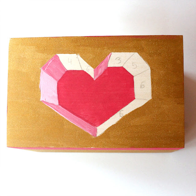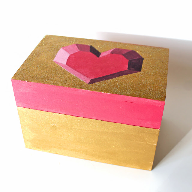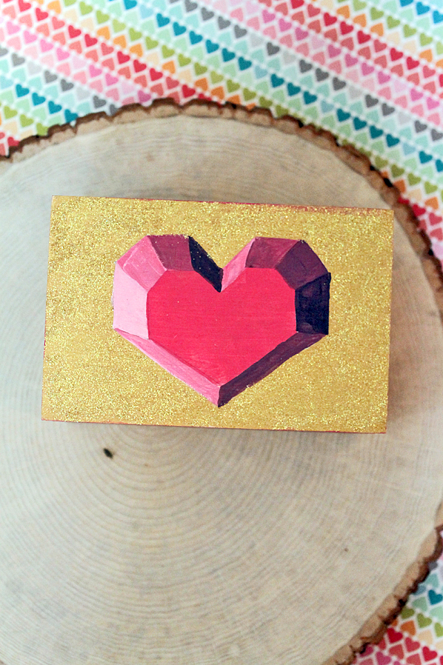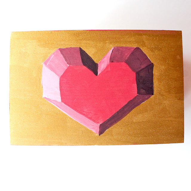 I shared this trick a couple of years ago, making faux 3D hearts and so I did it again, only this time I used paint to create an optical illusion 3D heart on top of this box. If you look at it straight from the top, it looks 3D! But it's actually just painted on.