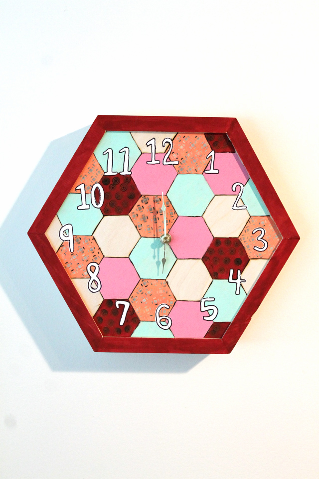 This month I made a clock out of a wooden hexagon! See how I did it here.