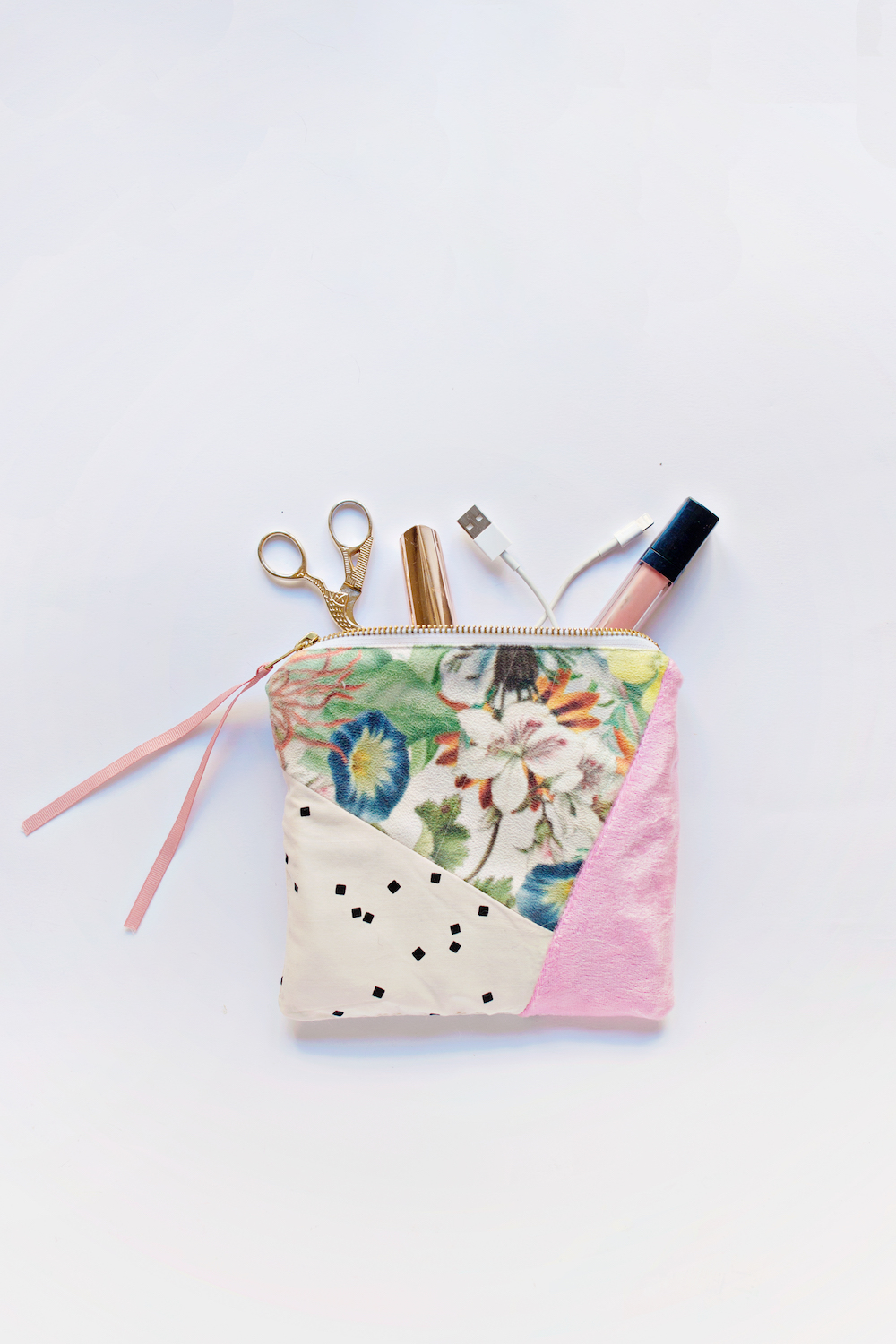 Use up some fabric scraps to make this Geometric Zipper Clutch with this DIY.