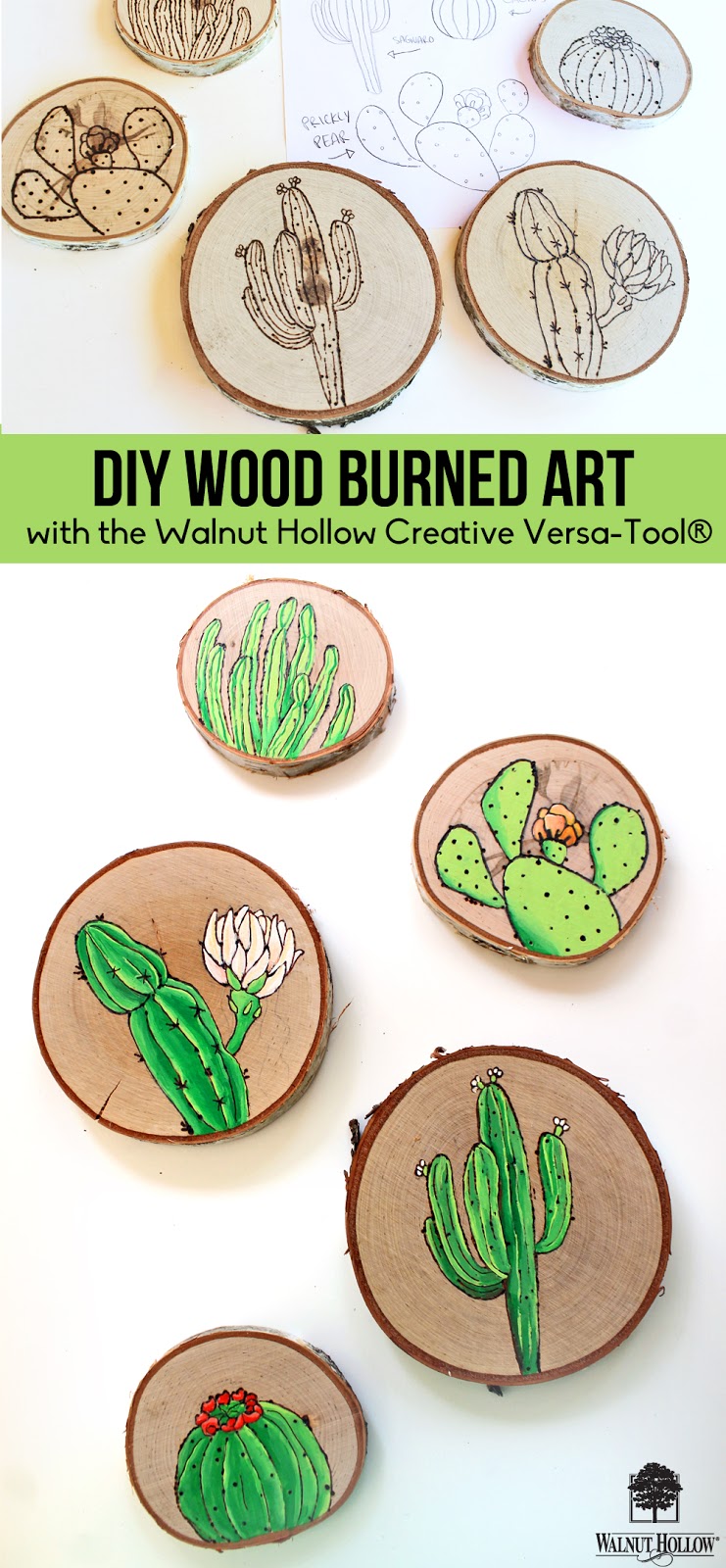 Hey Y'all, Today I am over on the Walnut Hollow blog sharing a few tips for doing wood burned illustrations, like these cactus above!