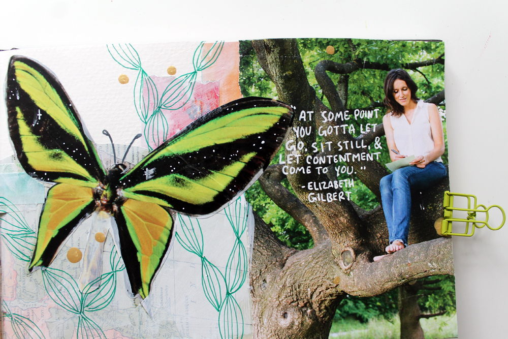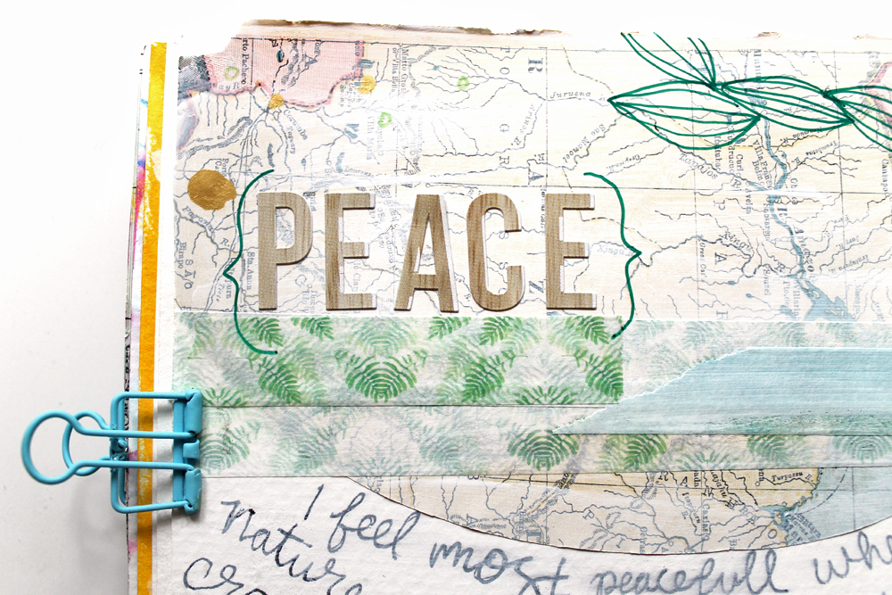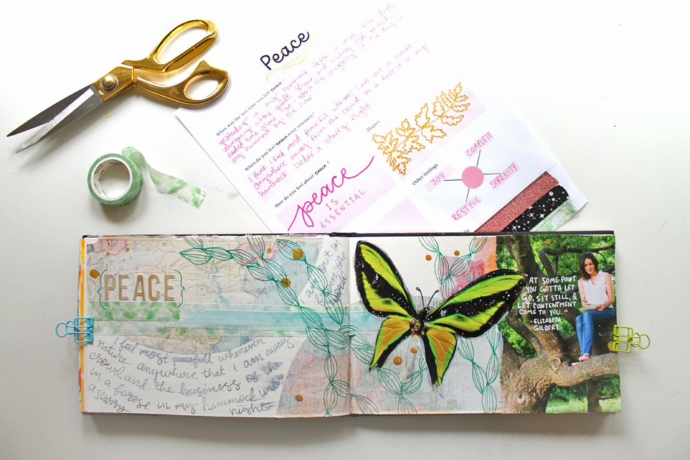 My Peace page. I'm most at peace whenever I'm out in nature, so that's definitely what inspired the butterfly, maps, and tree.