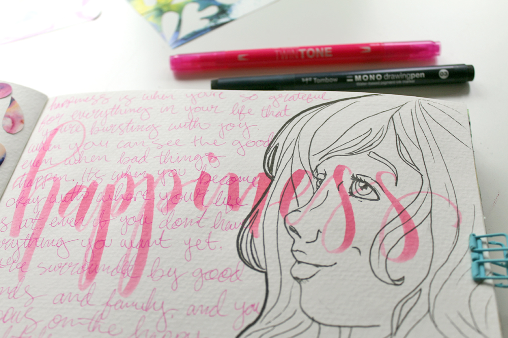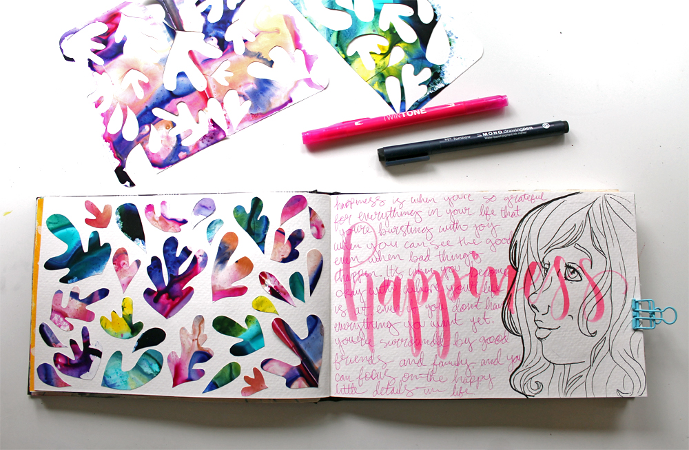 A Happiness page with a Matisse inspired collage on the left. I'm really in love with that technique.