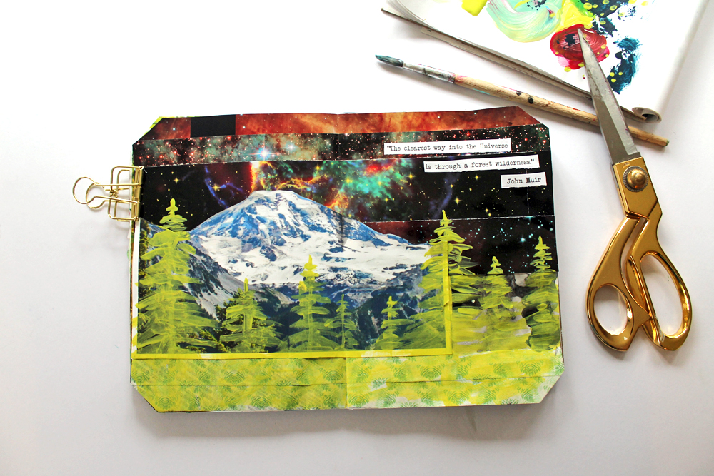 I finished off the page with some painted on trees in the foreground and a quote from John Muir. He has the best nature quotes.